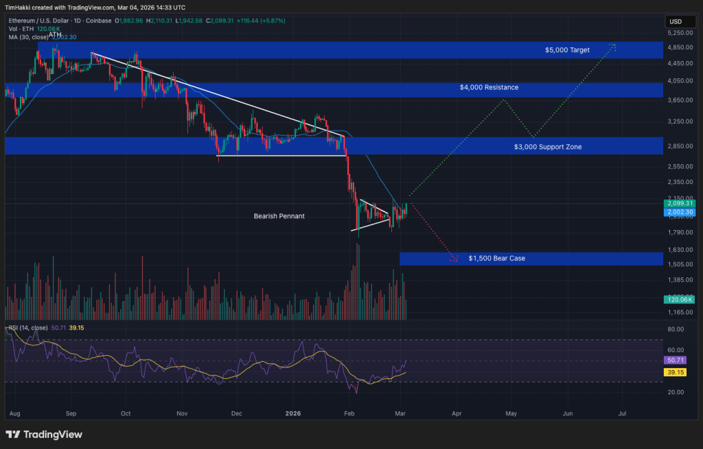 Technically, ETH is attempting to break free from a bearish pennant pattern that developed throughout February. For long-term holders, current price levels may offer a strategic accumulation window.